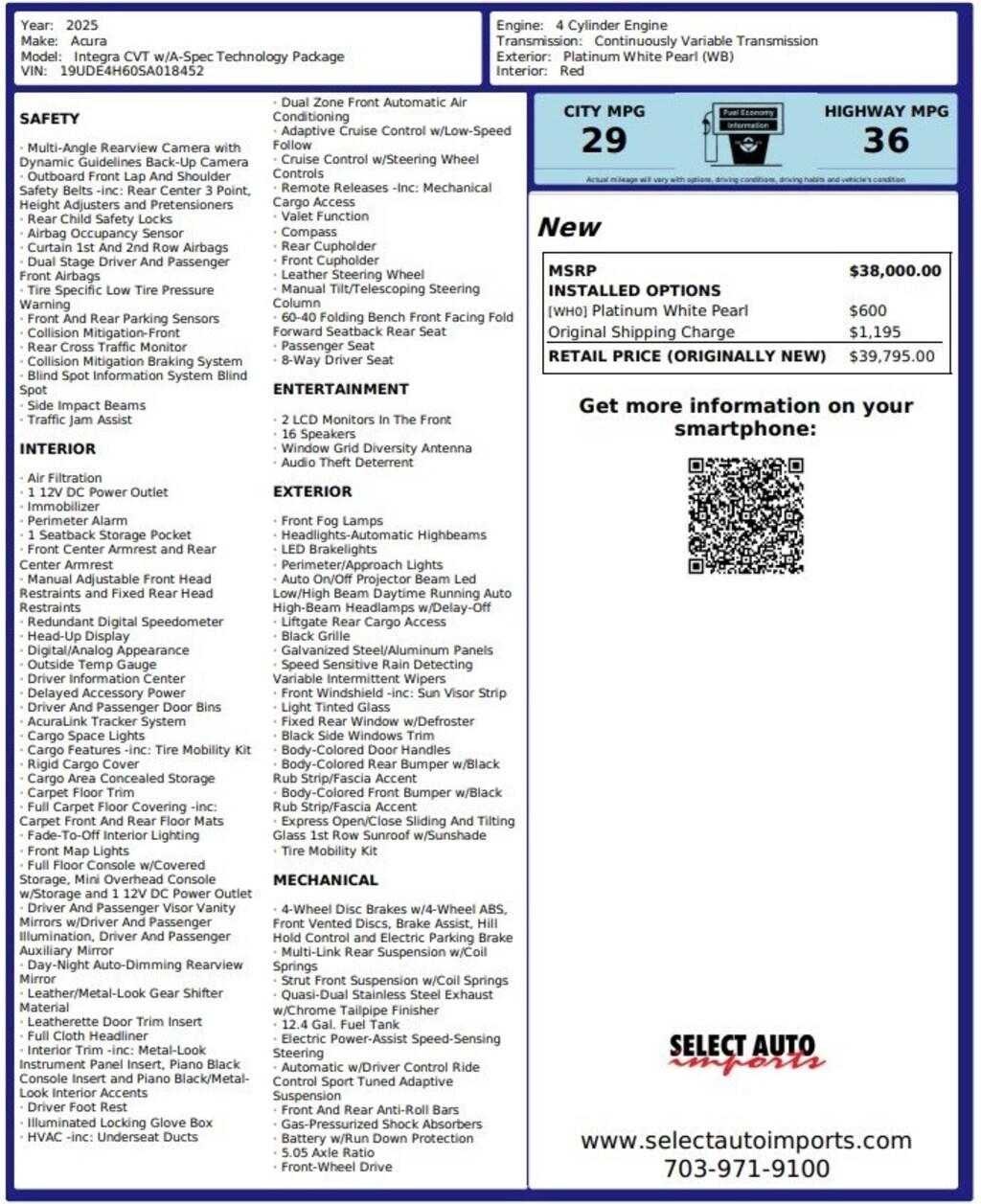 Certified Pre Owned 2025 AcuraIntegra A-Spec Tech Package