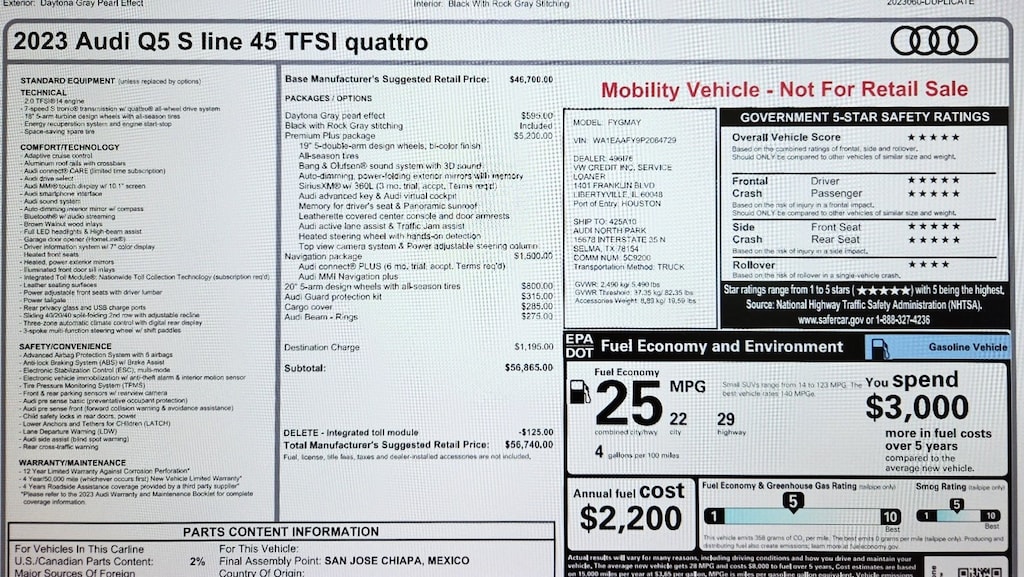 (Please note that on most used cars we do not have the original MSRP label that came with the car. We contract with a third-party company to recreate them for us. While they are generally accurate and reliable, we cannot guarantee that they are the exact replica of the original)