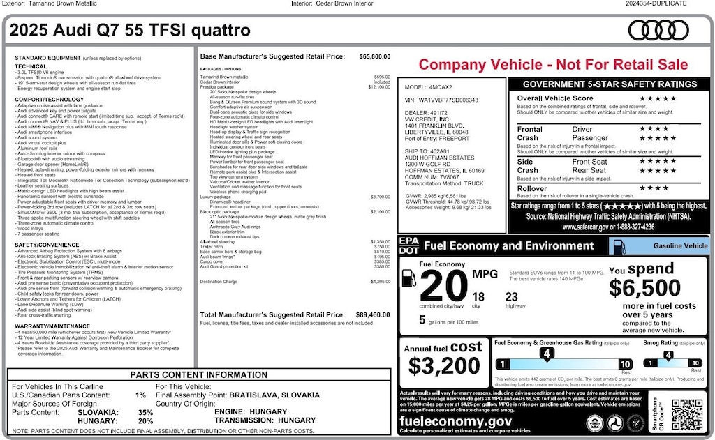 (Please note that on most used cars we do not have the original MSRP label that came with the car. We contract with a third-party company to recreate them for us. While they are generally accurate and reliable, we cannot guarantee that they are the exact replica of the original)