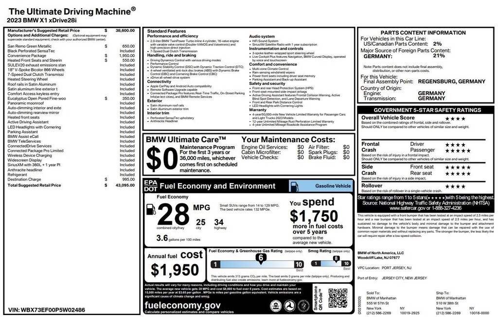 (Please note that on most used cars we do not have the original MSRP label that came with the car. We contract with a third-party company to recreate them for us. While they are generally accurate and reliable, we cannot guarantee that they are the exact replica of the original)