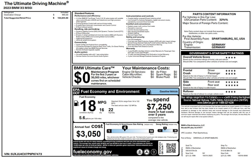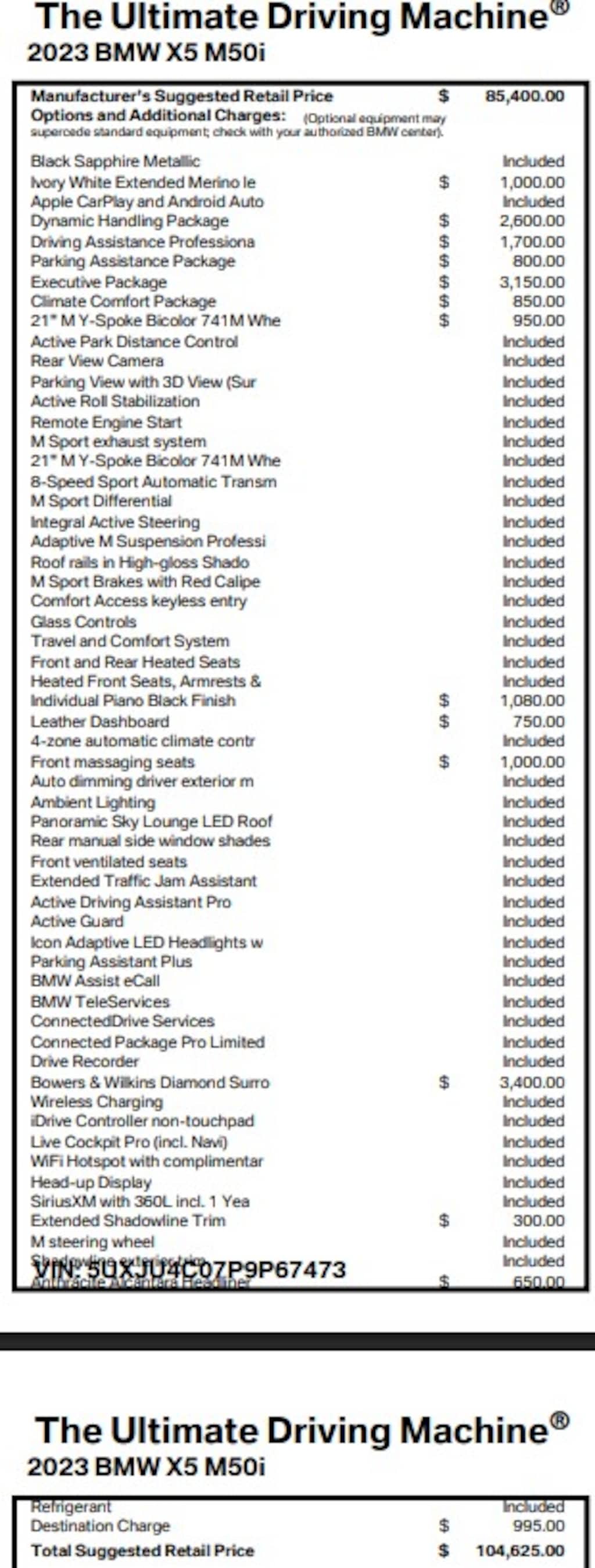 2023 BMW X5 M50i Black Sapphire Metallic AWD 8-Speed Automatic Sport 4.4L V8 DOHC 32V Twin Turbocharged