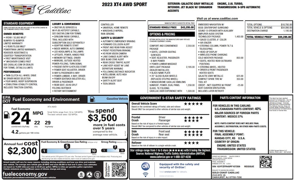 Cadillac User Experience W/ Embedded Navigation W/ Bose Centerpoint Surround Sound 13-Speaker W/ Auxiliary Amplifier Audio System ($1