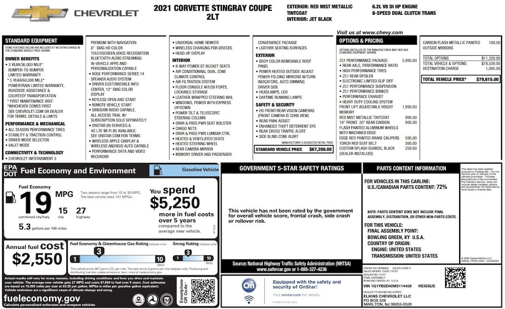 (Please note that on most used cars we do not have the original MSRP label that came with the car. We contract with a third-party company to recreate them for us. While they are generally accurate and reliable, we cannot guarantee that they are the exact replica of the original)
