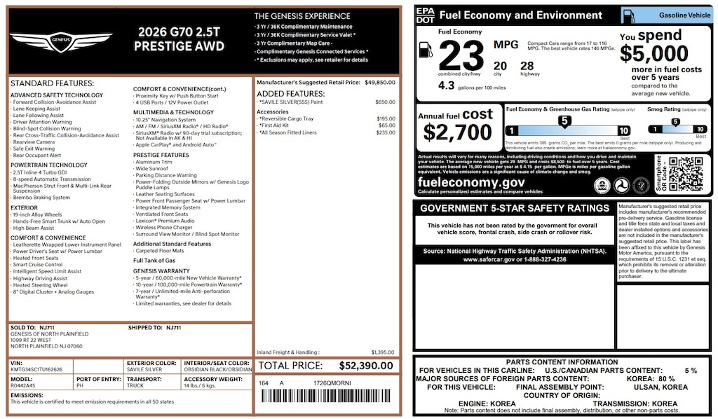 Genesis Connected Services Infotainment
