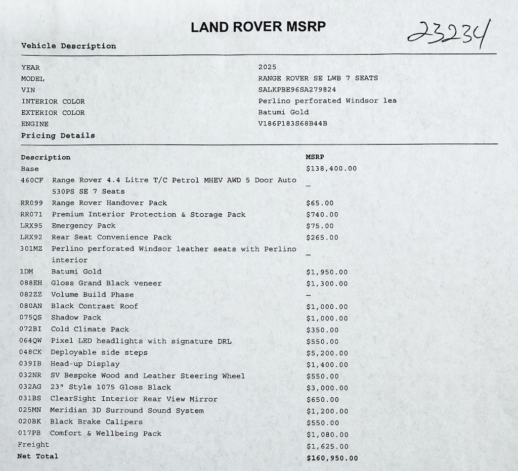 Range Rover Handover Pack$65