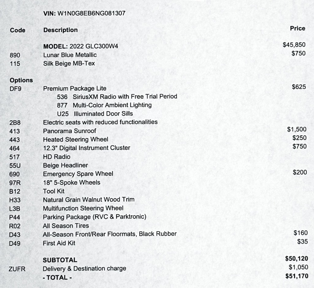 ORIGINAL MSRP $51,170.00
