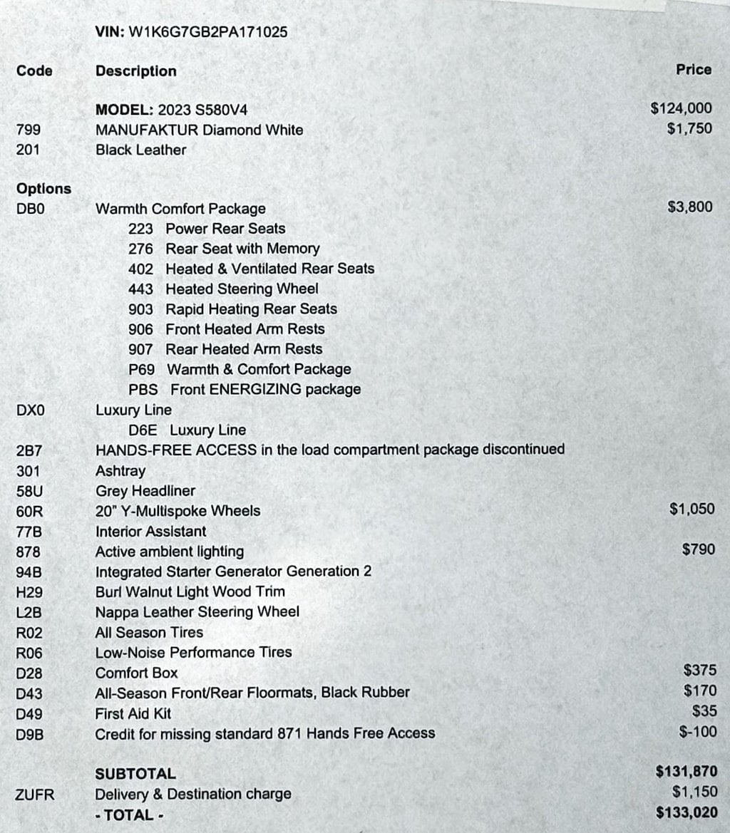 Original MSRP $133,020.00*Still under FULL Factory Warranty up to 04-27-2027 or 50,000 Miles, whichever comes first.*Warmth & Comfort PKG ($3,800)*20" Y-Multispoke Wheels ($1,050)*MANUFAKTUR Diamond White ($1,750)*Active Ambient Lighting ($790)*Select Auto Imports in Alexandria, VA. 703-971-9100 *CLEAN CARFAX REPORT. We are the only dealer in the Eastern United States that guarantees in writing that all our Certified vehicles have no frame damage and no body panel replacements. *Several more to choose from as well. We can arrange to ship your car Nationwide. Please contact us for more details. 1-877-971-9100 sales@selectautoimports.com Select Auto Imports, 5630 South Van Dorn St, Alexandria, VA 22310 -RECALL NOTICE: Some vehicles may be subject to manufacturer safety recalls that for various reasons may not be repaired prior to sale. You may also check for open recalls at www.safercar.gov All prices are subject to change without prior notice and are exclusive of any State or County fees and taxes for all buyers, in state and out. There will be fees applied to your final purchase price along with a Processing Fee of $995.00. (Not required by law). (Please note that on most used cars we do not have the original MSRP label that came with the car. We contract with a third-party company to recreate them for us. While they are generally accurate and reliable, we cannot guarantee that they are the exact replica of the original)