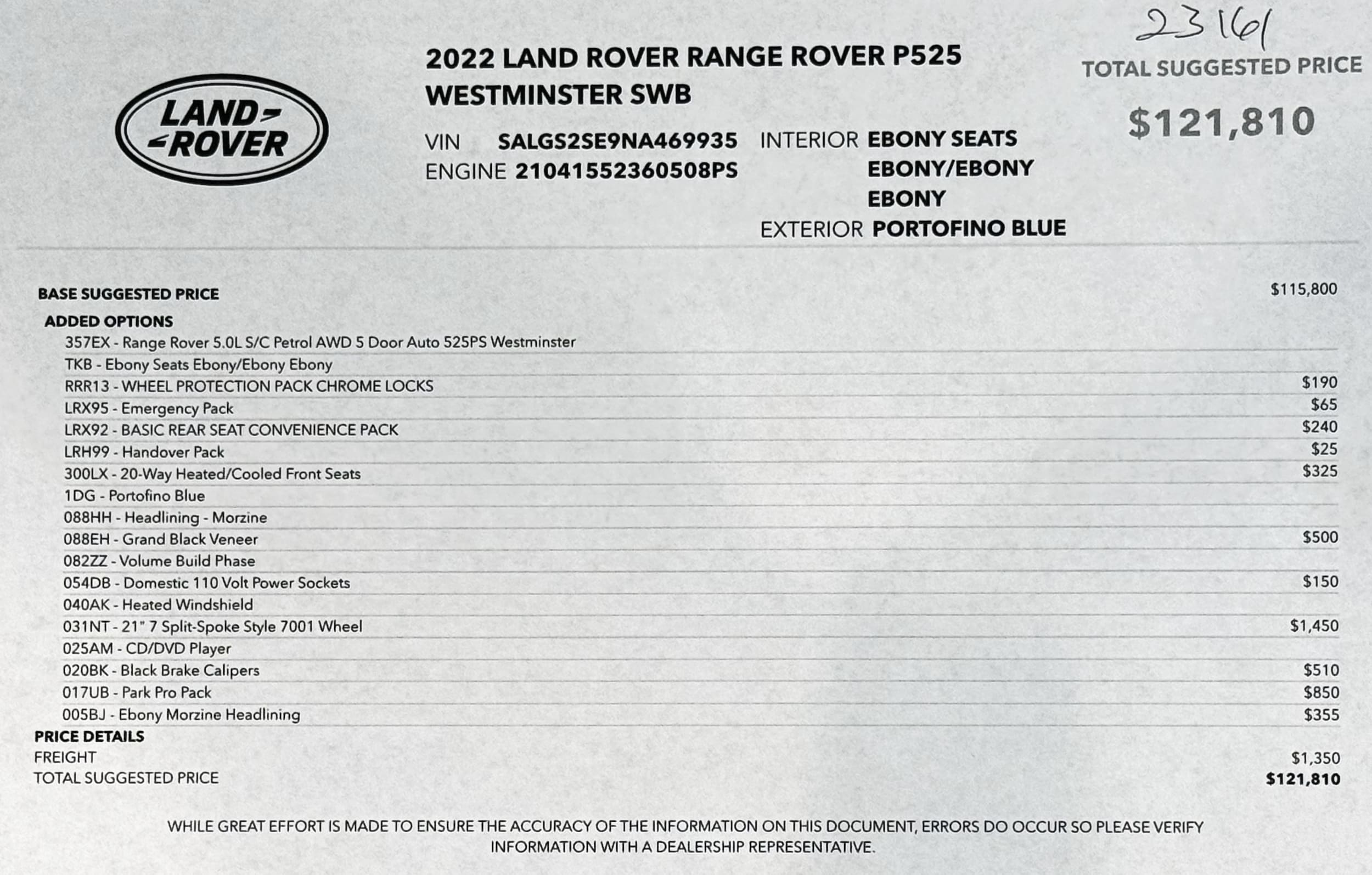 2022 Land Rover Range Rover P525 HSE Westminster Edition