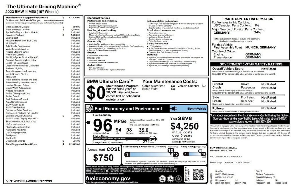 - Fuel economy combined: 96mpge